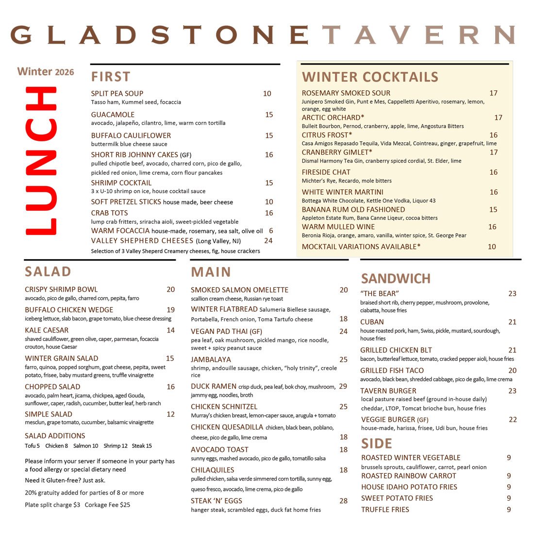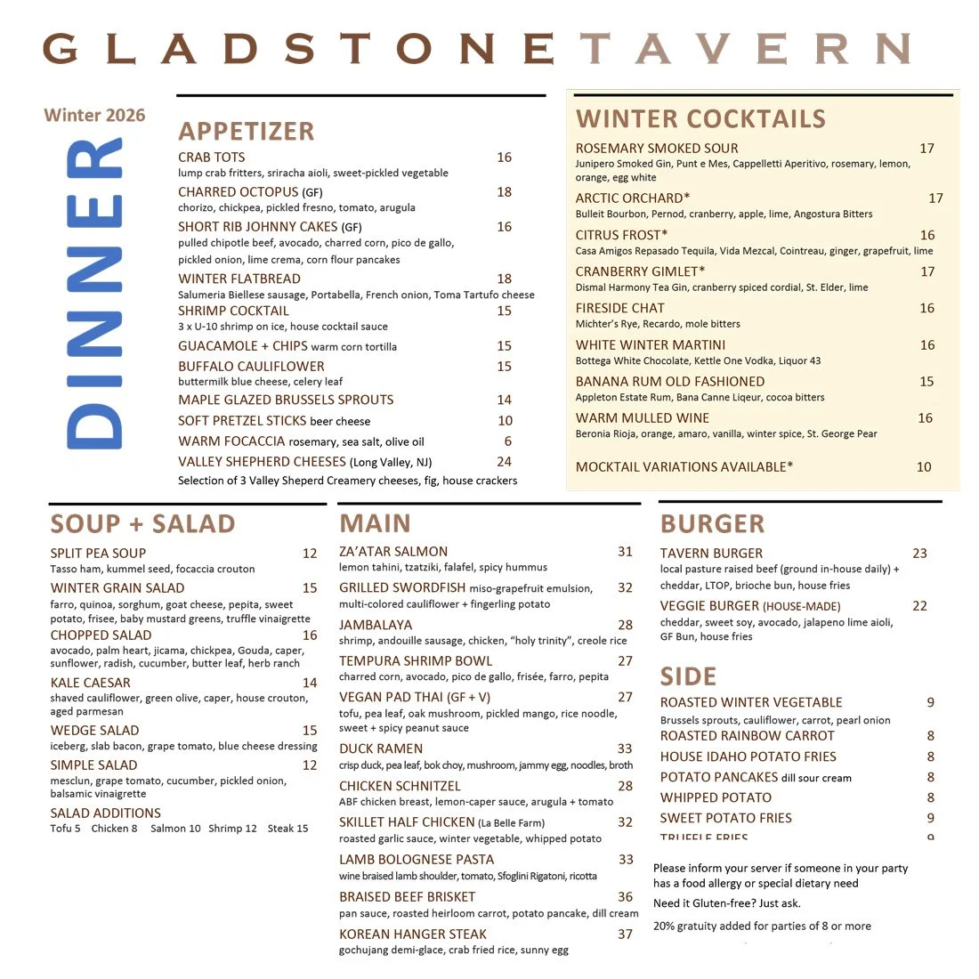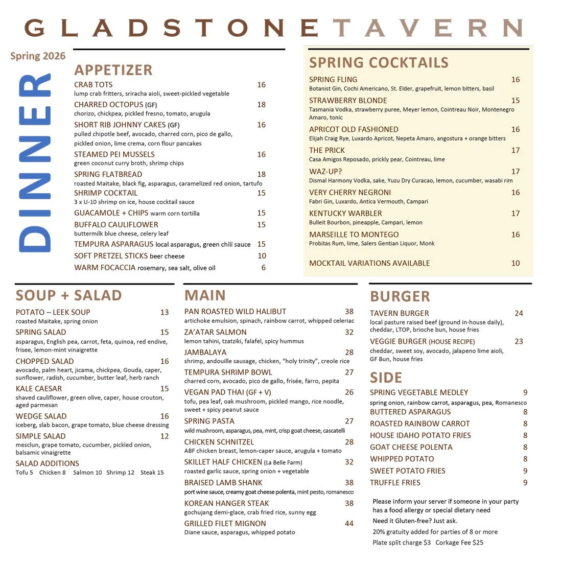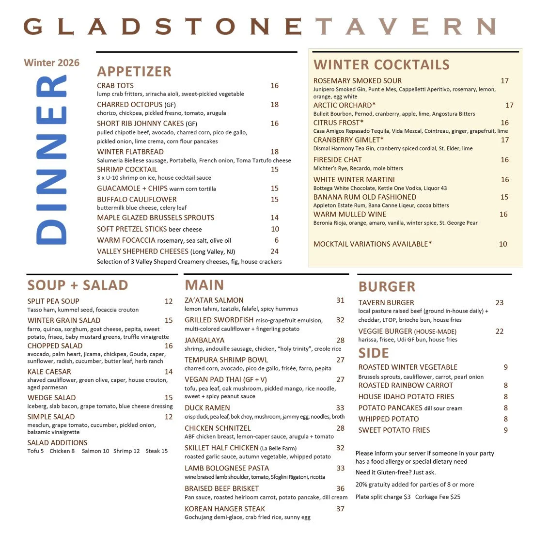 Our Menus change seasonally —•— Be sure to check back for updates