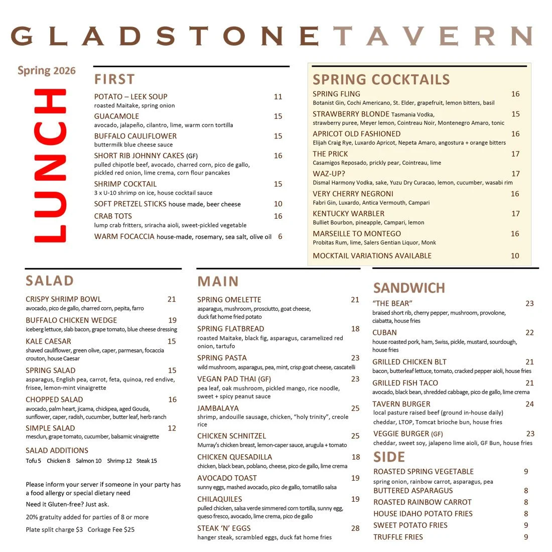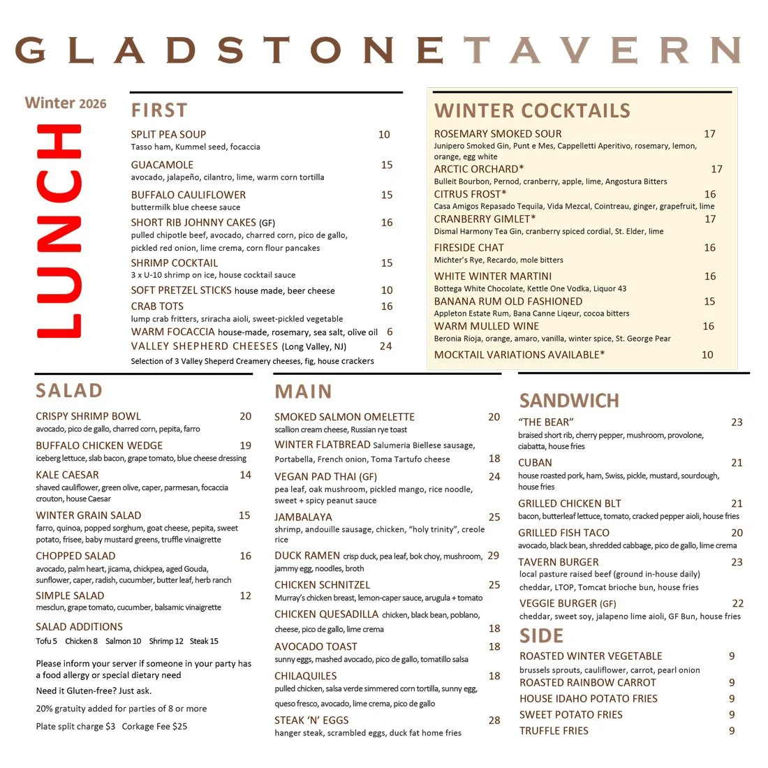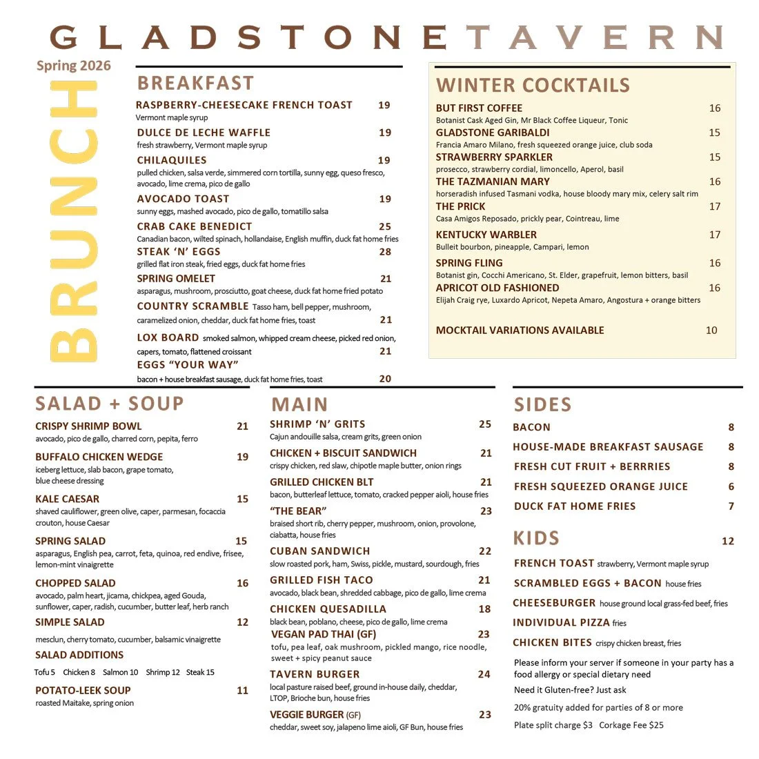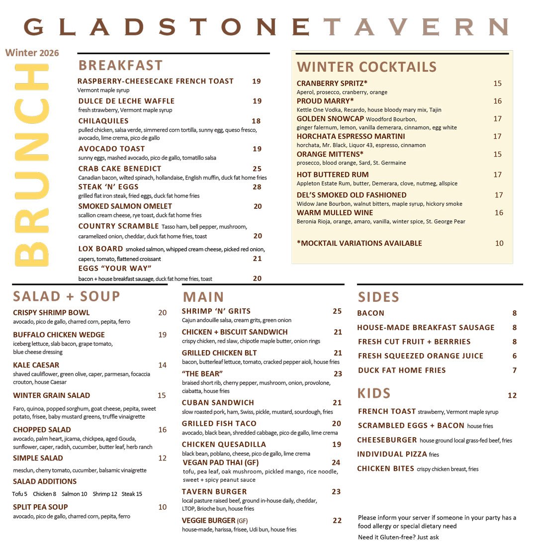 Our Menus change seasonally —•— Be sure to check back for updates