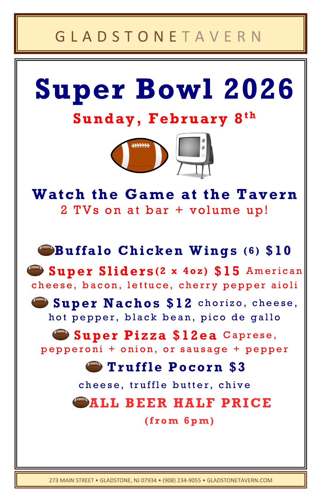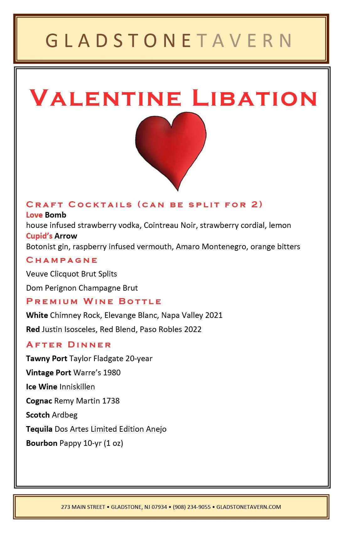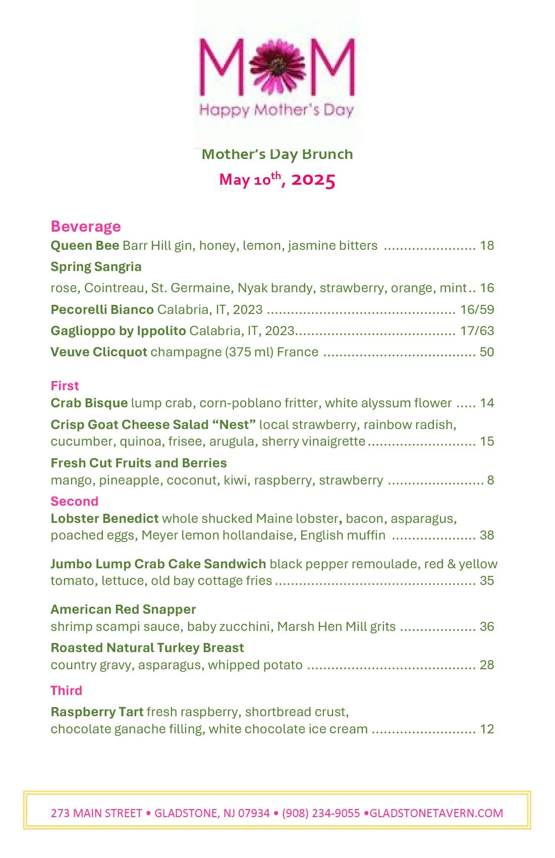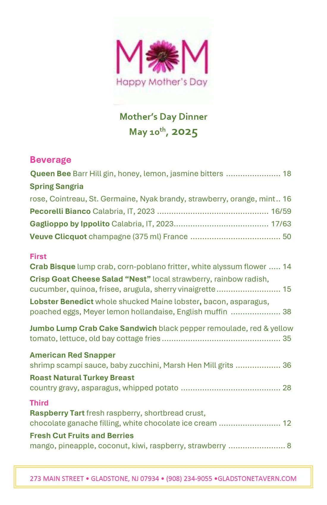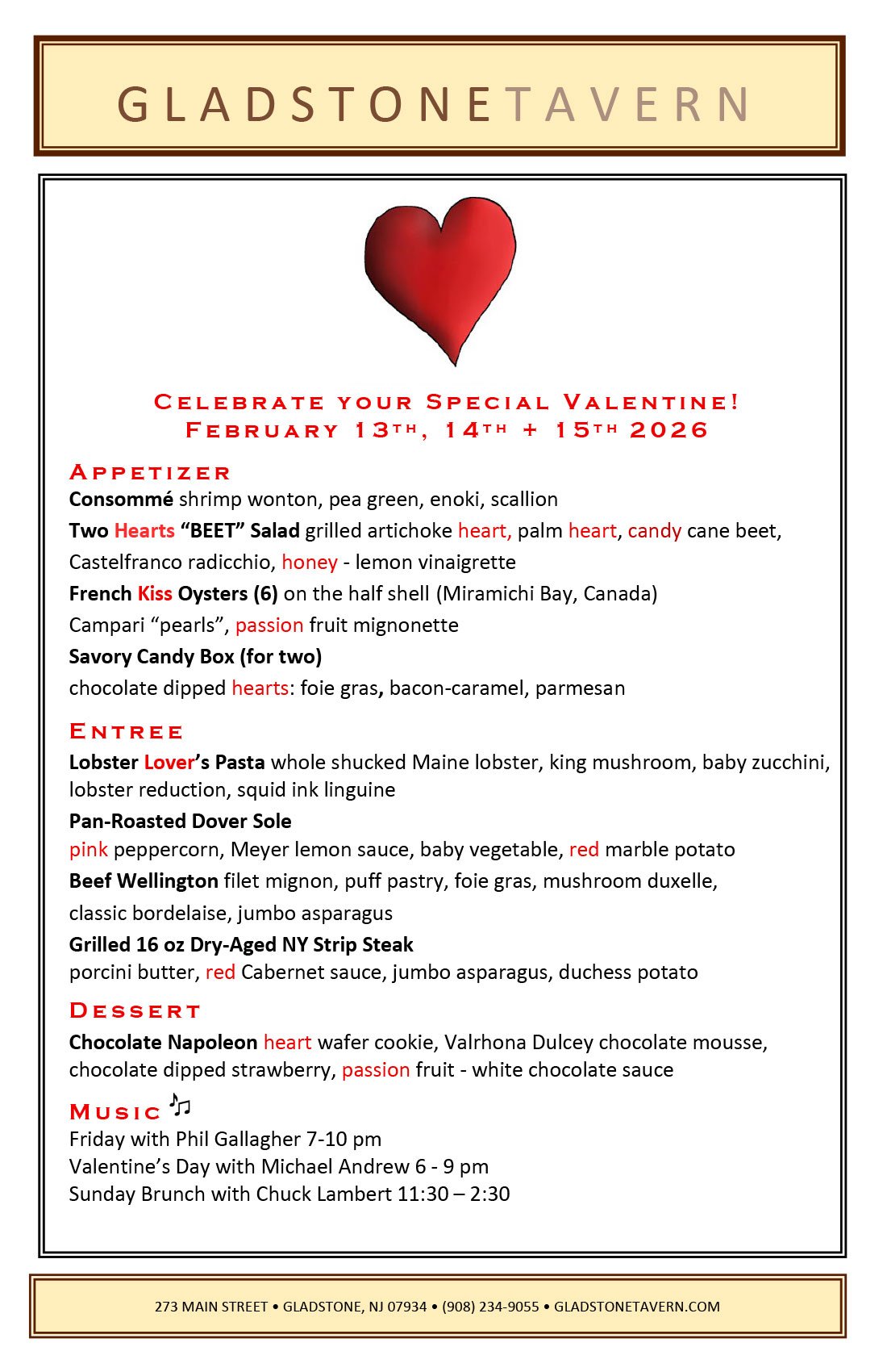 Special Events menus are also subject to change —•— Call the Tavern to make your reservations today!